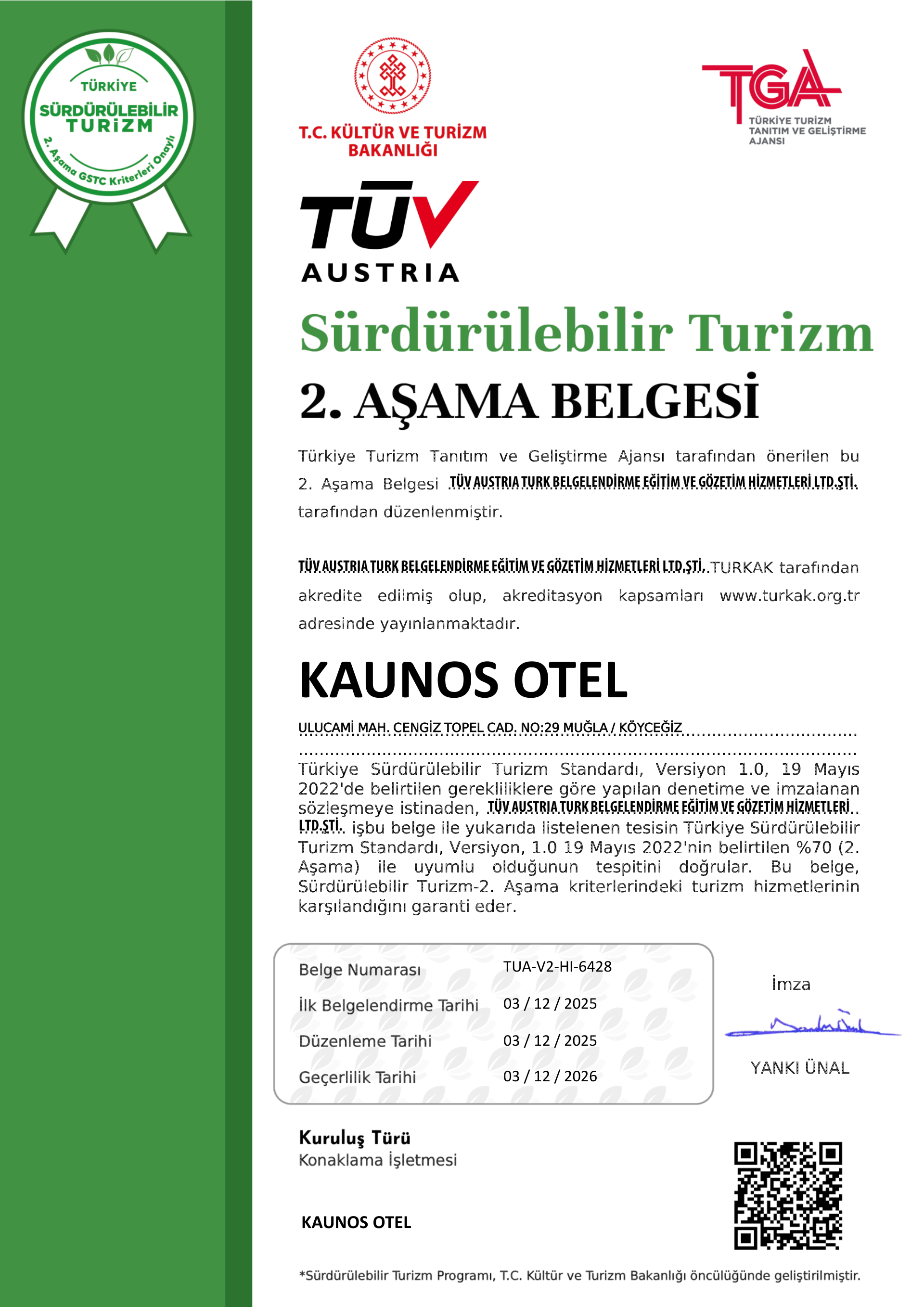 İşletmesi Kaunos Otelcilik Tarım Turizm İşlt. San. Tic. Ltd. Şti. yönetimi tarafından yapılan otelimize göstereceğiniz yakın ilgiye şimdiden teşekkür ederiz.
